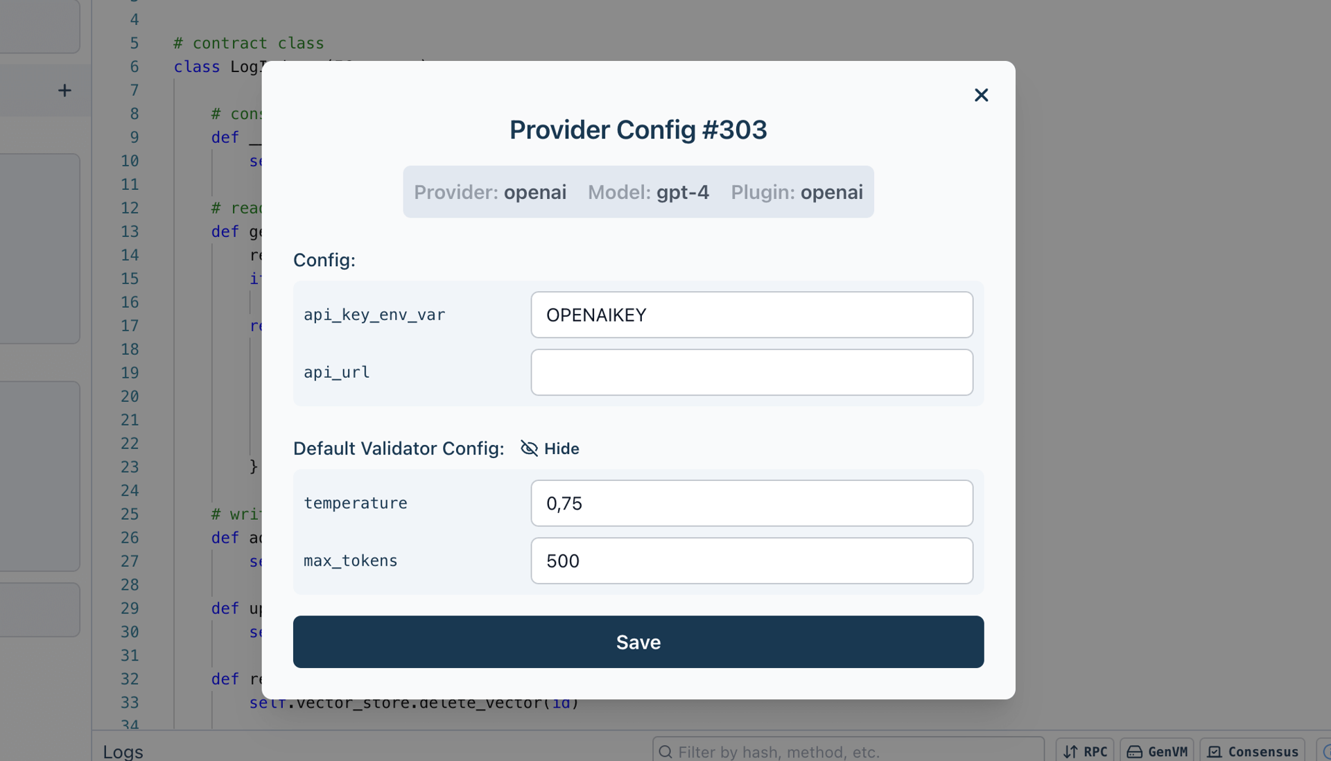 • Default Validator Config: This config is used as default when creating a new validator, and will then be applied when making calls to inference providers using said validator.